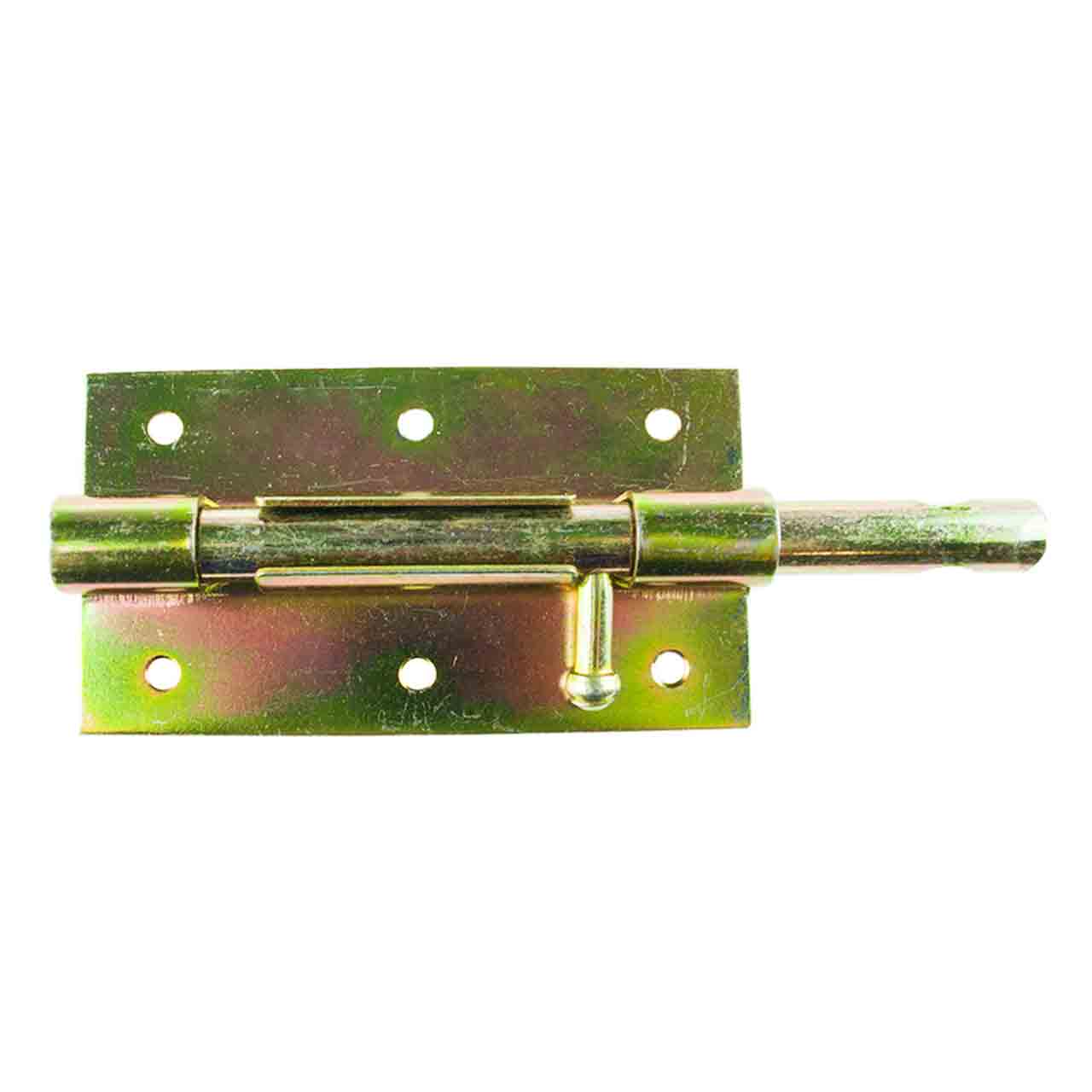 Шпингалет 100 мм выполнен из высокопрочной инструментальной стали покрытой желтым цинком для того чтобы фурнитура не ржавела и служила долгие годы.