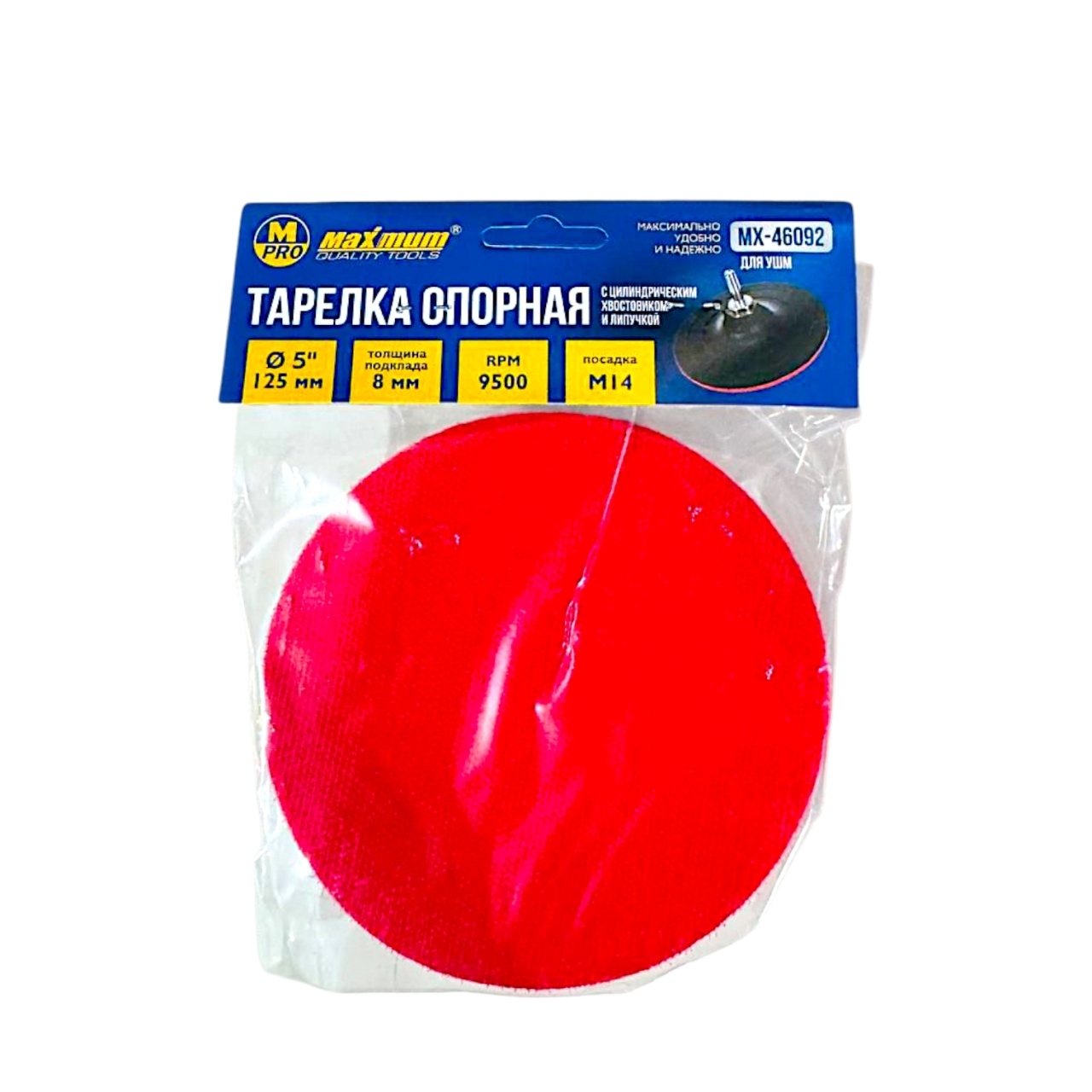 Тарелка опорная 8×125 мм для УШМ, с липучкой, цилиндрический хвостовик, "MAXIMUM" (Максимум)MX 46092